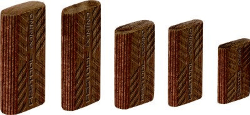 • Die seitlich überstehenden Führungsrippen zentrieren den Dübel mittig in der DOMINO Fräsung und sorgen somit für ein perfektes Ausrichten der Werkstücke