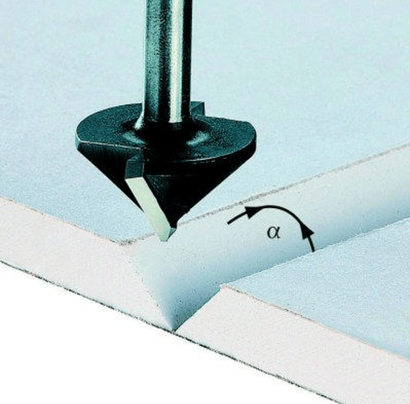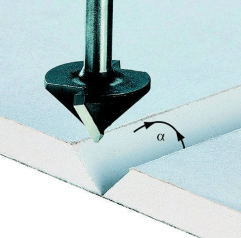 • Gipsplatten können mit dem Gipskartonfräser und dem Führungssystem einfach zu 45° oder 90° Ecken gefräst werden