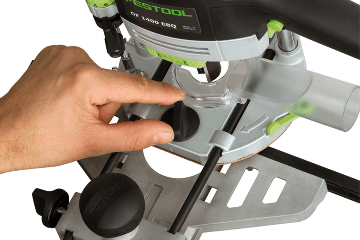 Bei Fräsarbeiten, die parallel zur Werkstückkante ausgeführt werden, ist der Seitenanschlag die optimale Lösung. Einfach über 2 Führungsstangen an der Oberfräse befestigen, und schon kann es losgehen.