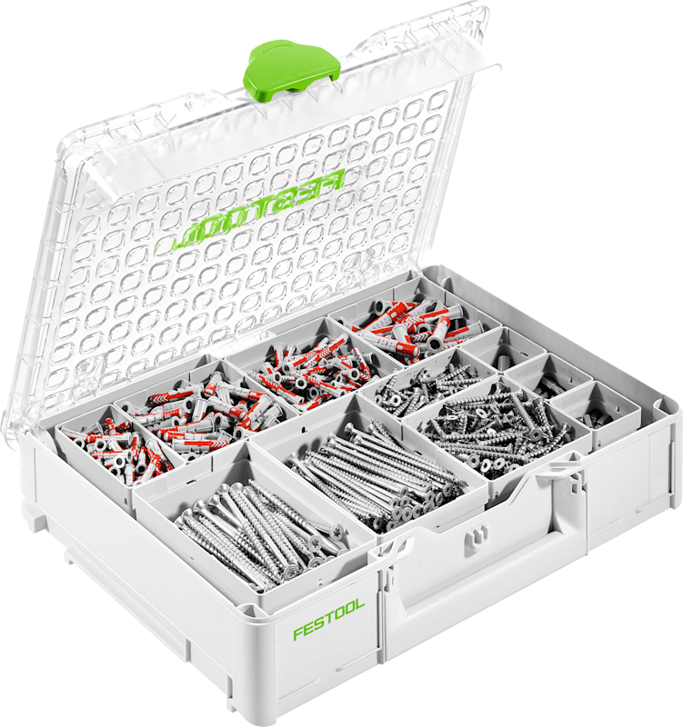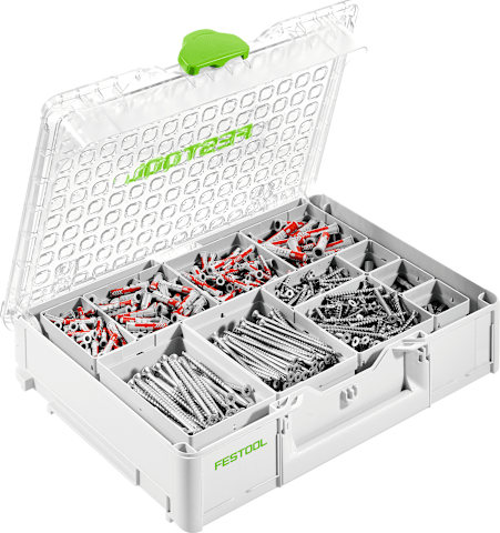 Die limitierte Edition des Organizers sorgt für maximale Ordnung bei der Aufbewahrung von Schrauben und Dübeln. Die umfangreiche Ausstattung besteht aus hochwertigen Schrauben und Dübeln sowie passendem Bit-Zubehör.