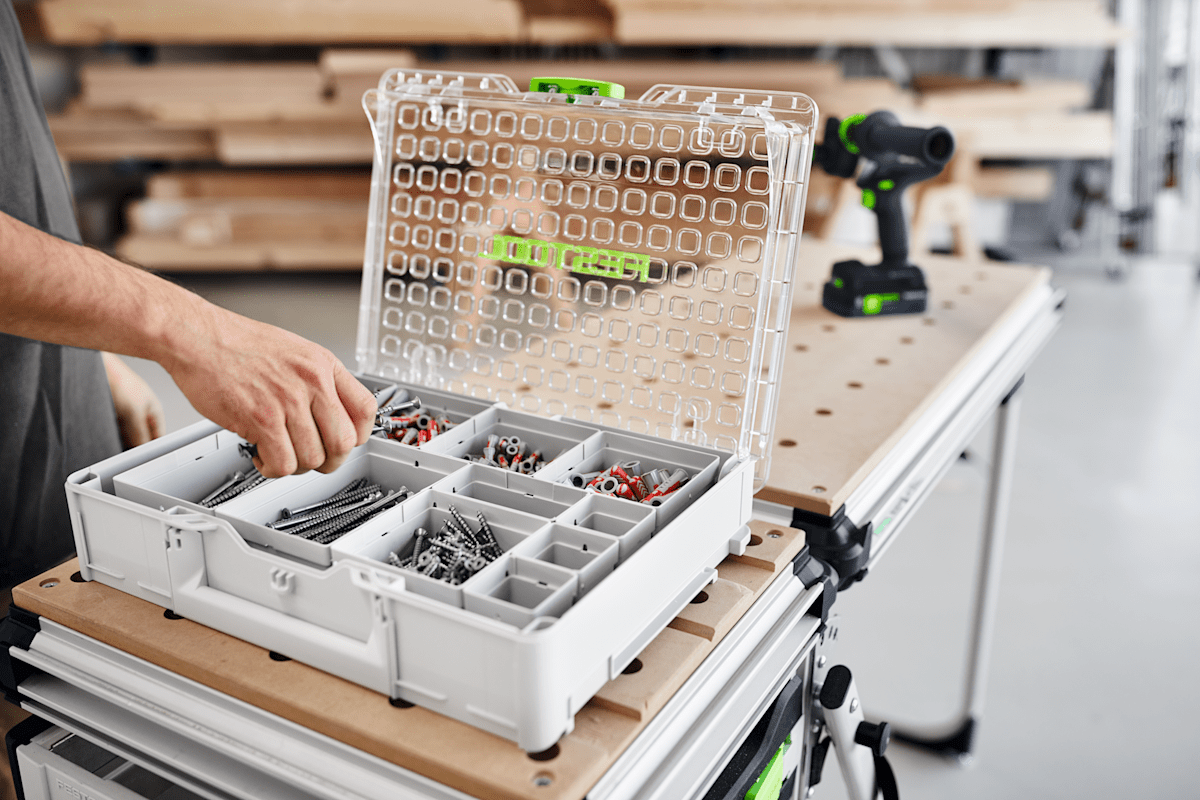 Übersichtlich in den Einsatzboxen des Organizers sortiert, könnt ihr das gesamte Verbrauchsmaterial dank transparentem Deckel auch von außen einsehen und habt somit jederzeit den vollen Durchblick für die Montage. Zusätzlich lässt sich der Schrauben- und Dübel-Organizer ganz einfach von der stationären Werkstatt bis zum Einsatzort transportieren, da er perfekt in die bott vario3 Fahrzeugeinrichtung integriert werden kann – jetzt als limitierte Sonderedition bei teilnehmenden Fachhändlern und nur solange der Vorrat reicht.
