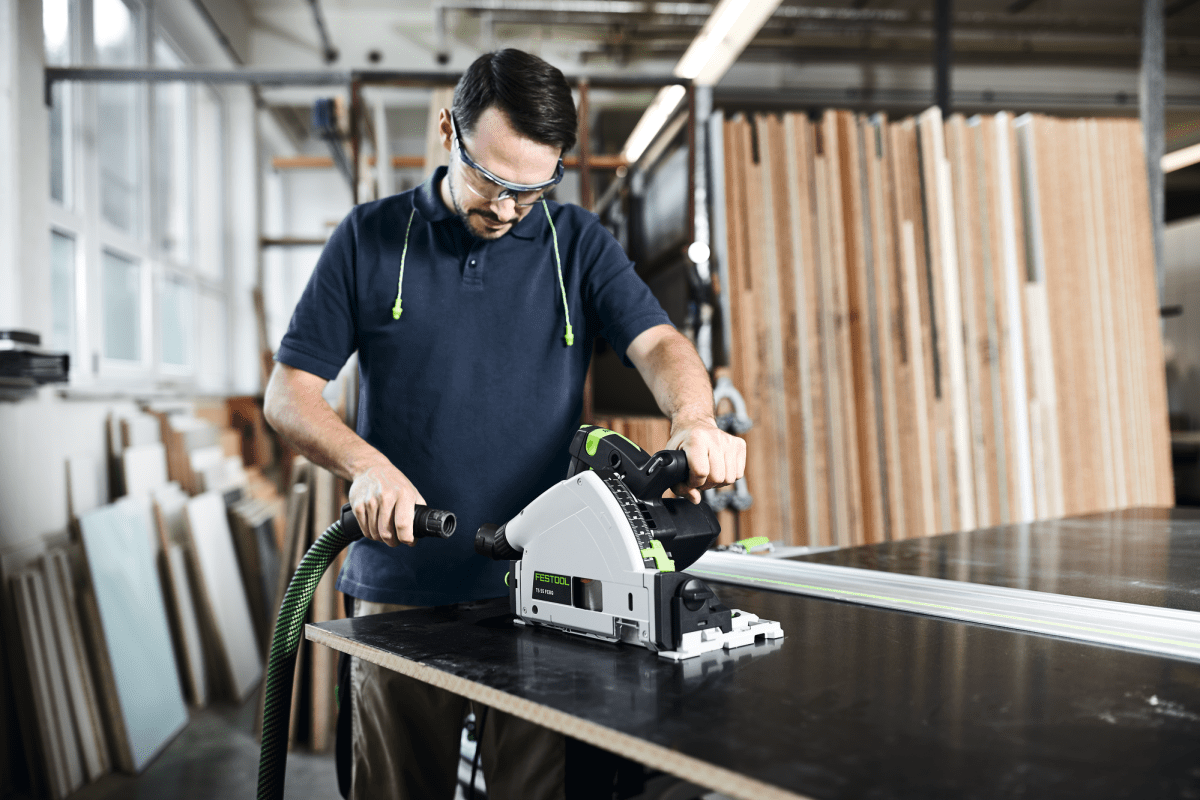 SAUBERE SCHNITTKANTEN – Beidseitig nahezu ausrissfreies Arbeiten durch den aufsteckbaren Splitterschutz, auch bei empfindlichen Materialien.