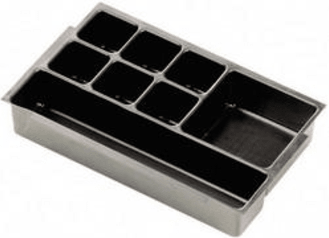 Eine Tiefzieheinlage mit verschieden großen Fächern