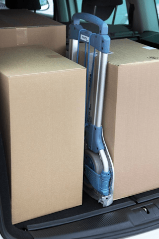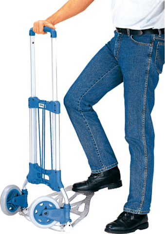 Paketroller, klappbar• Aluminium-Stahlrohr-Konstruktion • Details: hochwertiger Kunststoff • Schaufel: Aluminium • Griffbügel: handsympathisch, rutschsicher • Auf-/Zuklappen: Schaufel und Räder mi