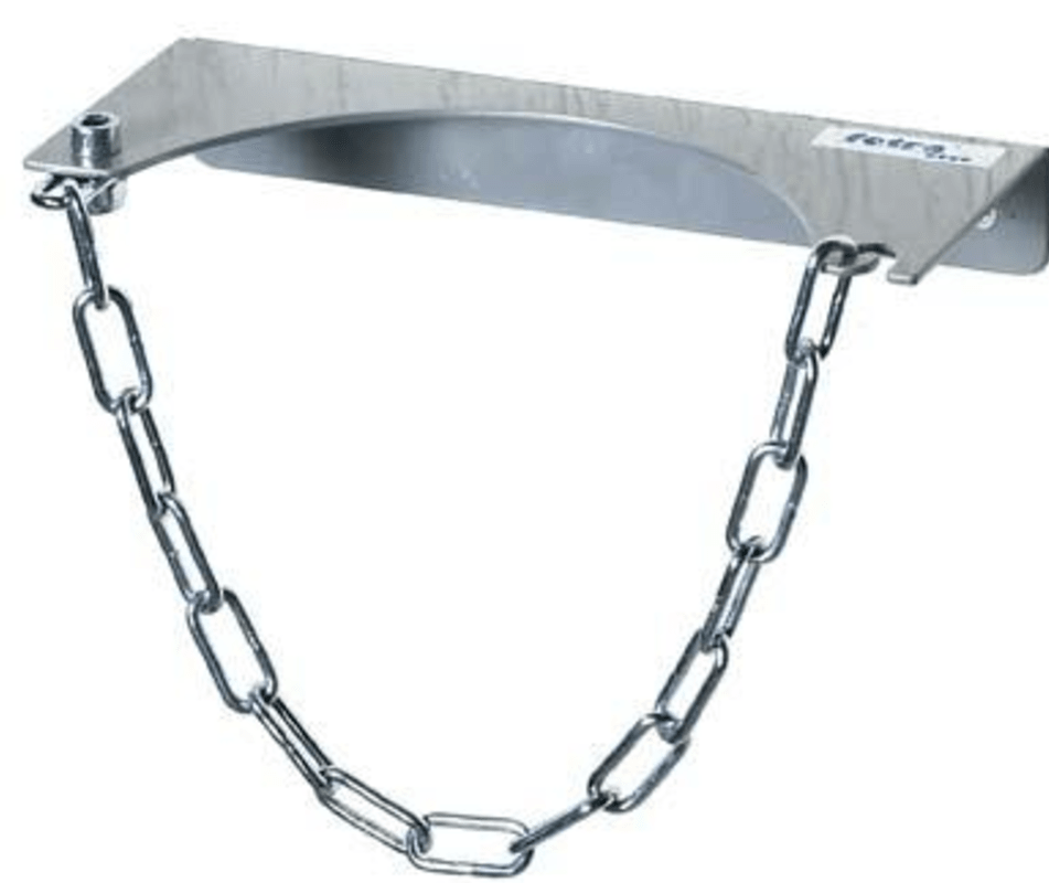 • Mit Kettensicherung und Bohrungen: für die Wandbefestigung