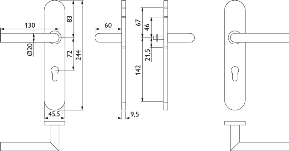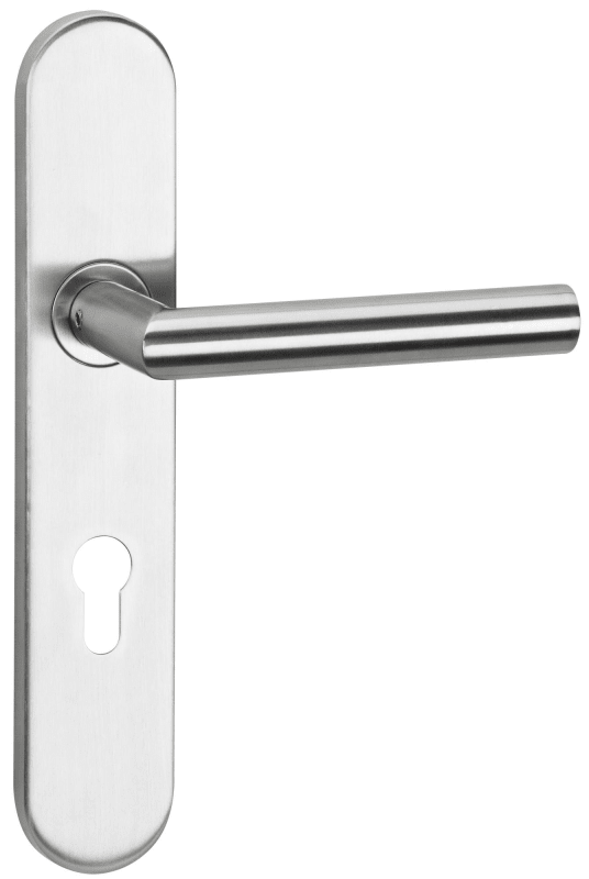 Feuerschutz-Drückergarnitur 1802 BASIC 02, mit Gleitlager-Langschild 2002 U FS, Ausf.: PZ, fest/drehbar, 9 mm Vierkant, Türstärke 37 - 58 mm, Oberfl. 60 (Edelstahl matt)