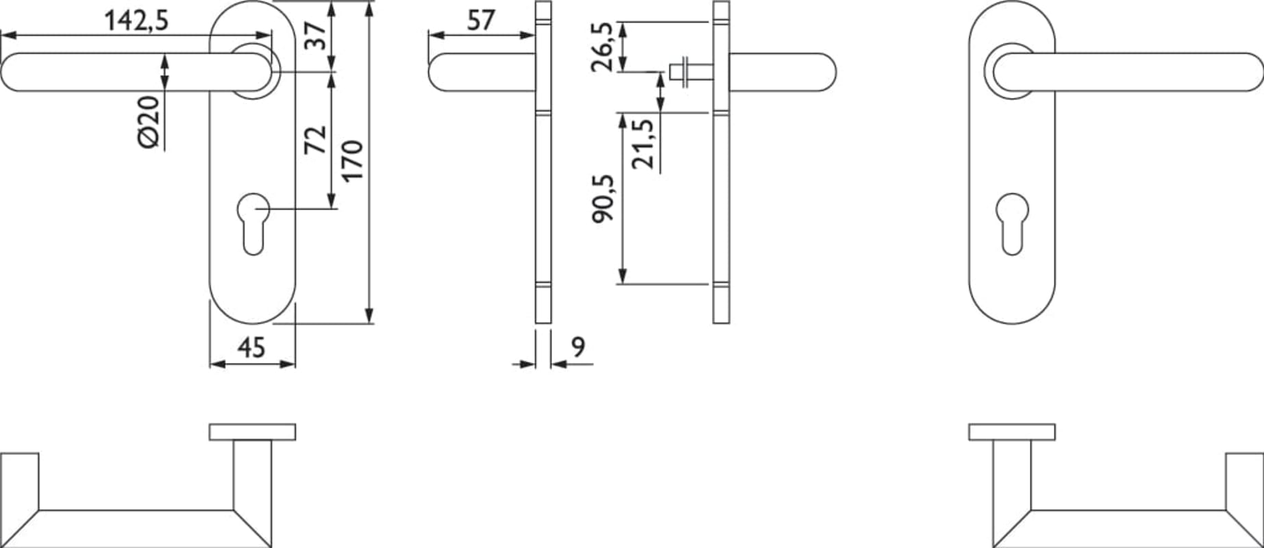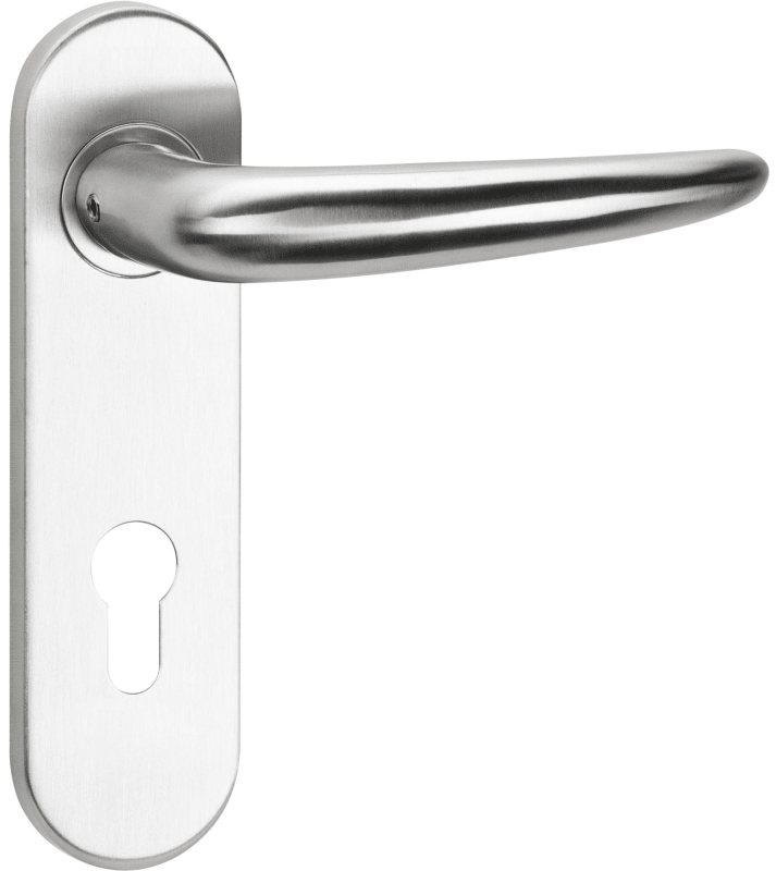 Feuerschutz-Drückergarnitur 1806 BASIC 06, mit Gleitlager-Kurzschild 2006 KU FS, Ausf.: PZ, fest/drehbar, 9 mm Vierkant, Türstärke 42 - 78 mm, Oberfl. 60 (Edelstahl matt)
