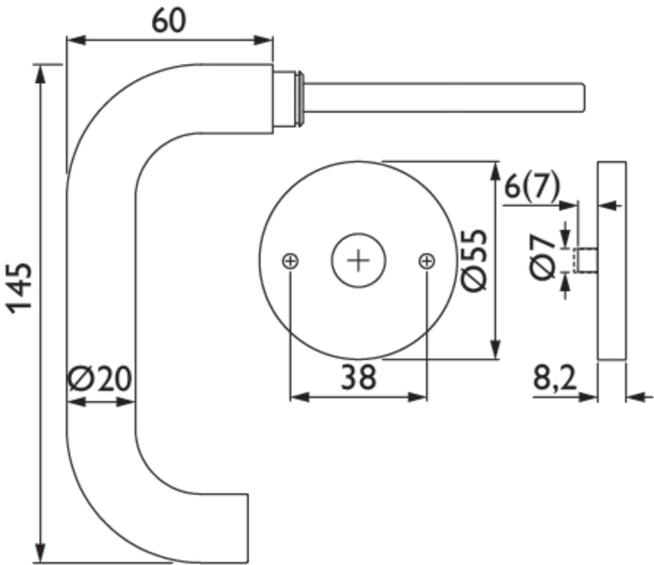 Feuerschutz-Halbgarnitur 1801 BASIC 01, mit Gleitlager-Rosette 2073 FS, Nocken mit M5 Durchgangsloch / KL4 Design, fest/drehbar, Gegenrosette blind, inkl. Schrauben, Oberfl. 60 (Edelstahl matt)