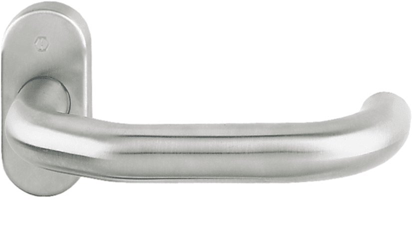 Edelstahl-Feuerschutz-Profiltür-Rosetten-Garnitur: geprüft nach DIN 18273, Türgriff fest/drehbar gelagert in der Metall-Unterkonstruktion, mit Rückholfeder, für HOPPE-Profilvollstift-Verbindung mit Kl