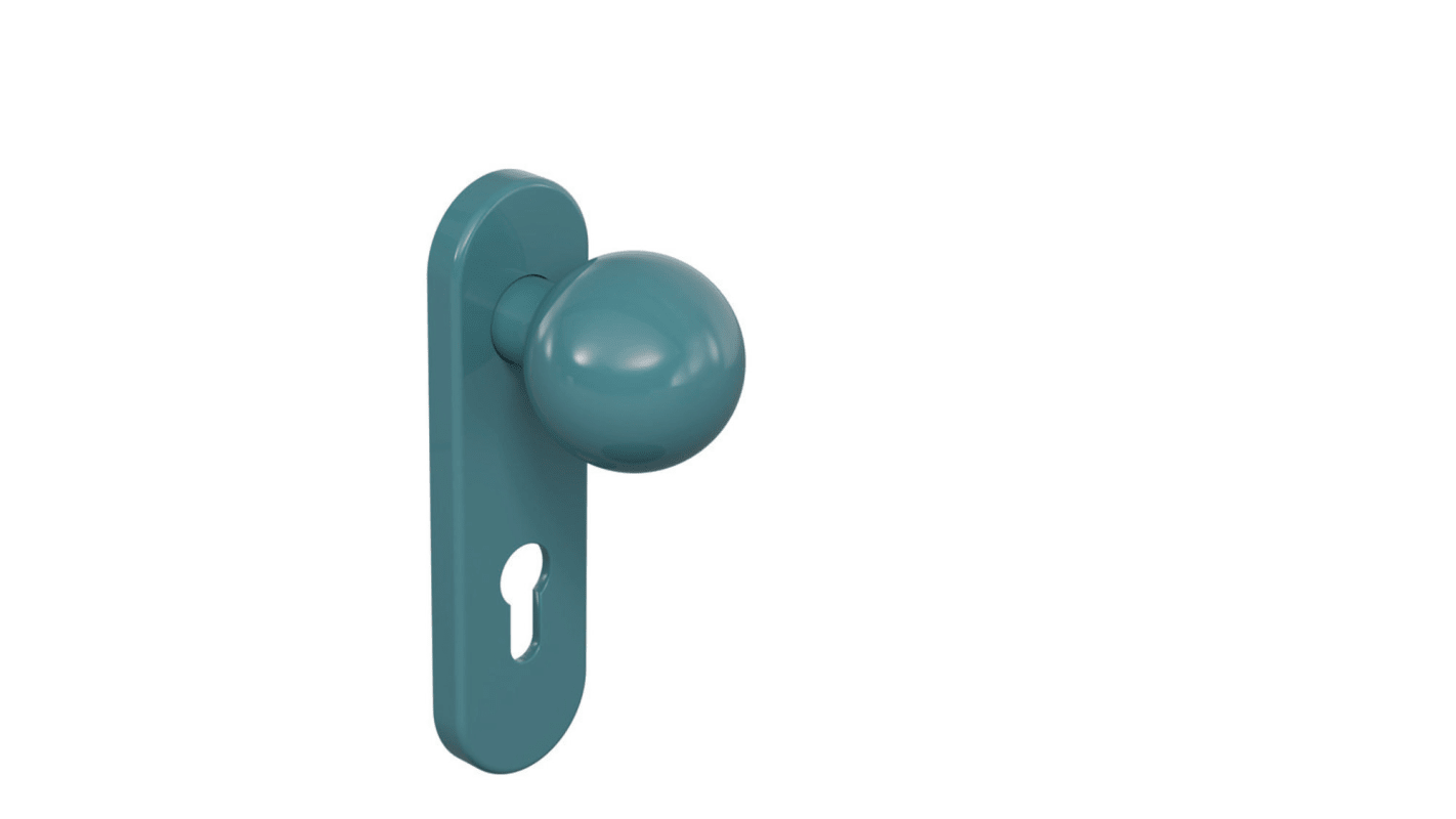HEWI Wechselgarnitur 111R13.213; Produkttyp: Wechselgarnitur; Produkttyp (Hersteller): Wechselgarnitur; Ausführung: Kurzschild; Befestigungsart: verdeckt verschraubt; Befestigungstechnik: mit Stütznocken; Form: oval; Vierkant: 9 mm; Material: Kunststoff; Material Unterkonstruktion: Kunststoff-Edelstahlverbundbau; Form Türgriff (innen): U-Form; Ausführung Türgriff (innen): mit Stahlkern; Form Türgriff (außen): Kugelknopf; Durchmesser Türgriff (innen): 23 mm; Länge Türgriff (innen): 150 mm; Höhe Türgriff (innen): 67 mm; Höhe Türgriff (außen): 67 mm; Schildbreite außen: 46 mm; Schildbreite innen: 46 mm; Schildlänge außen: 168 mm; Schildlänge innen: 168 mm; Schildstärke außen: 11 mm; Schildstärke innen: 11 mm; Lagerung: festdrehbar,Doppellager; Einsatzbereich: Objekttür; Türart: Vollblatt; Türwerkstoff: Holz,Stahl; Norm: DIN 18040,DIN 18273,DIN EN 179,DIN EN 1906,DIN 18255; Zulassung: für Rauchschutz,für Feuerschutz,für Fluchttüren; Anwendung: außen/innen; Lochung: Profilzylinder gelocht; Entfernung: 72 mm; DIN-Richtung: DIN Links-Rechts; Farbe: blau; Farbton: aquablau; Oberfläche: hochglanz; Technik: R-Technik; Ausführung Vierkant: Wechselstift; Türstärke min.: 38,1 mm; Türstärke max.: 48 mm; Zusatzinformation: Rastung kann mittels Demontageschlüssel wieder gelöst werden