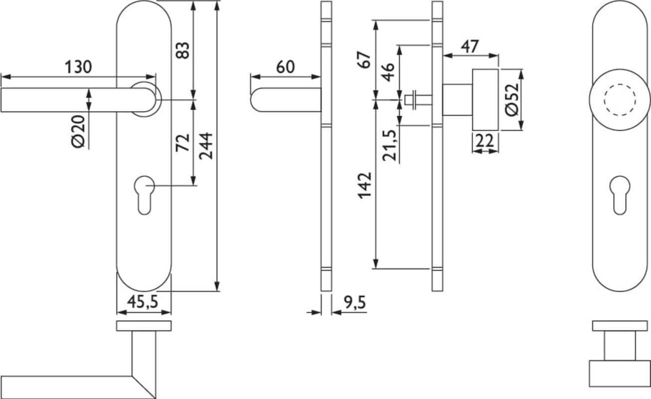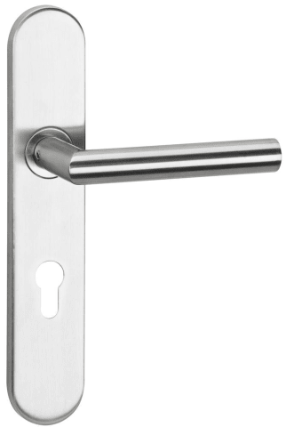 Feuerschutz-Wechselgarnitur 1802 BASIC 02, mit Gleitlager-Langschild 2002 U FS / Knopf 3127, Ausf.: PZW, fest/drehbar, 9 mm Vierkant, Türstärke 37 - 58 mm, Oberfl. 60 (Edelstahl matt)