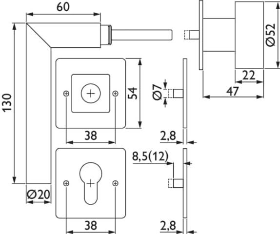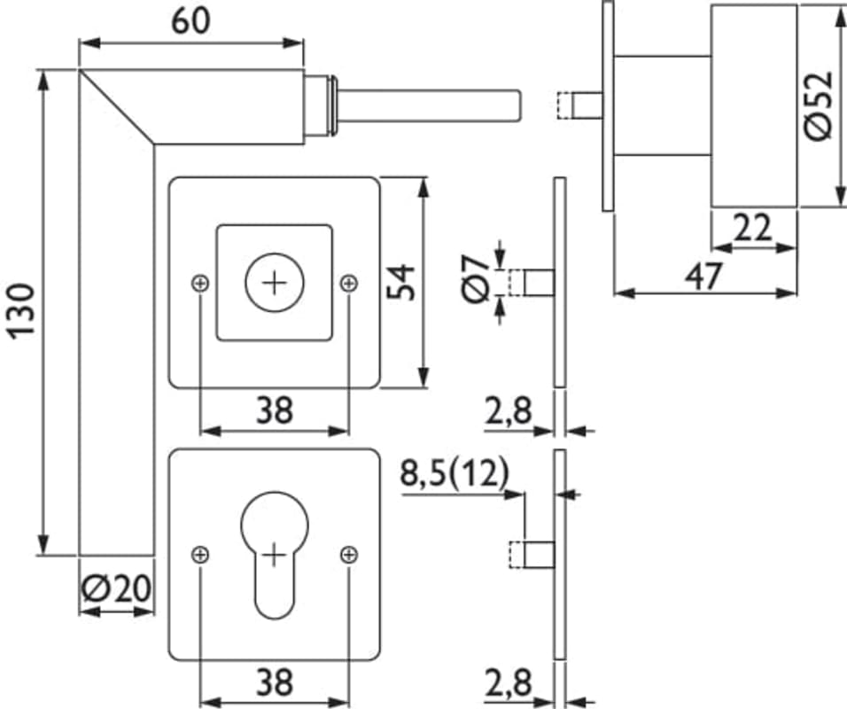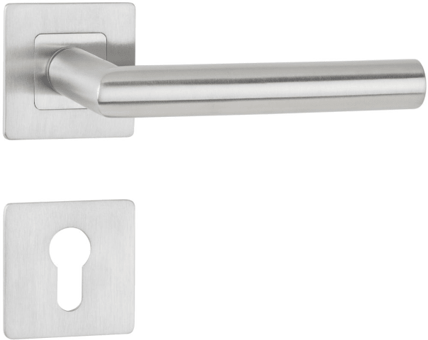 Feuerschutz-Wechselgarnitur 1802 BASIC 02, mit MAGCLIP Rosetten 2612 FL / Knopf 3127 K, Ausf.: PZW, fest/drehbar, 9 mm Vierkant, Türstärke 40 - 57 mm, Oberfl. 60 (Edelstahl matt)