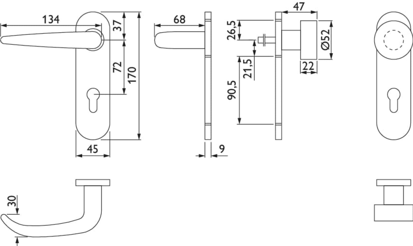 Feuerschutz-Wechselgarnitur 1806 BASIC 06, mit Gleitlager-Kurzschild 2006 KUI FS / Knopf 3127, Ausf.: PZW, fest/drehbar, 9 mm Vierkant, Türstärke 42 - 70 mm, Oberfl. 60 (Edelstahl matt)