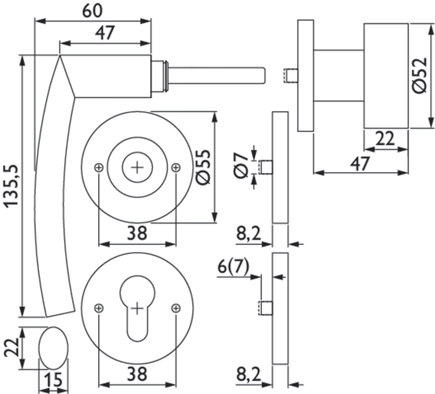 Feuerschutz-Wechselgarnitur 1807 BASIC 07, mit Gleitlager-Rosetten 2073 FS / Knopf 3127, Ausf.: PZW, GK 4/7, fest/drehbar, 9 mm Vierkant, Türstärke 40 - 58 mm, Oberfl. 60 (Edelstahl matt)