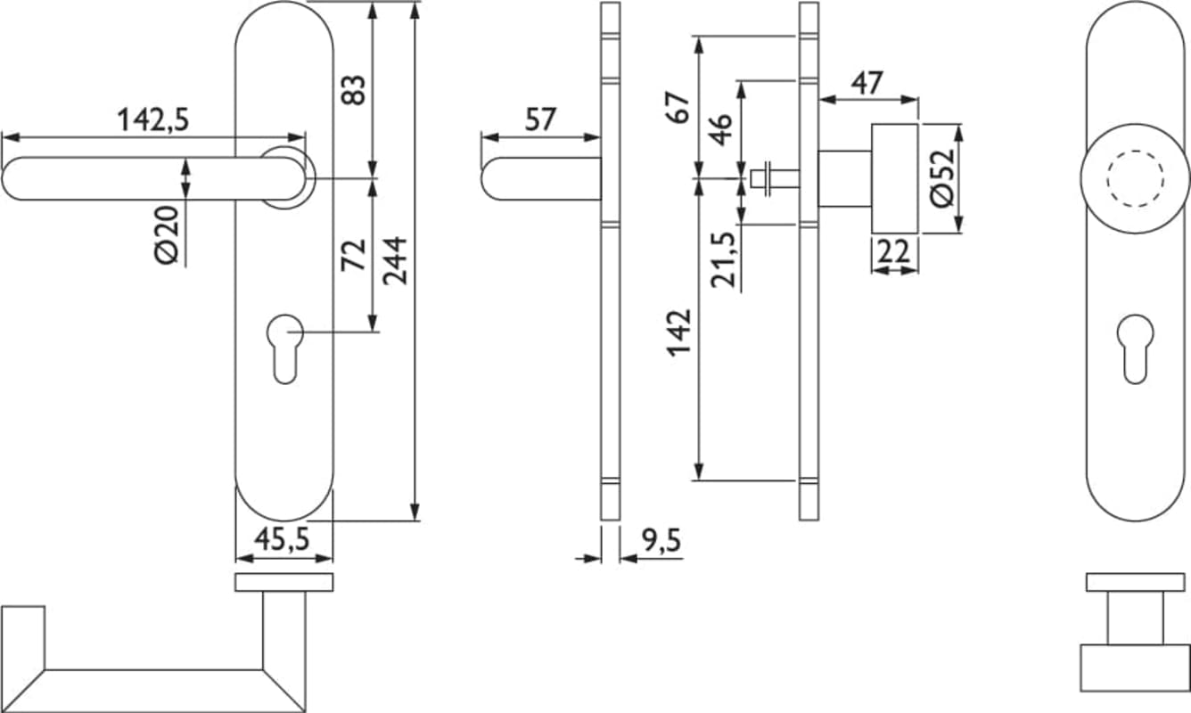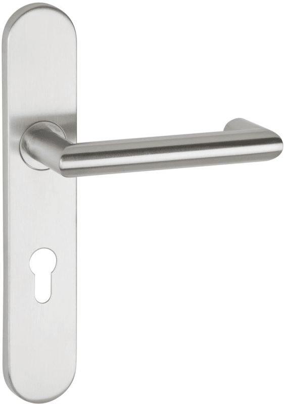 Feuerschutz-Wechselgarnitur 1808 BASIC 08, mit Gleitlager-Langschild 2002 U FS / Knopf 3127, Ausf.: PZW, fest/drehbar, 9 mm Vierkant, Türstärke 37 - 58 mm, Oberfl. 60 (Edelstahl matt)