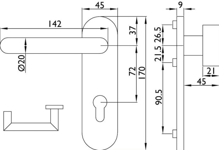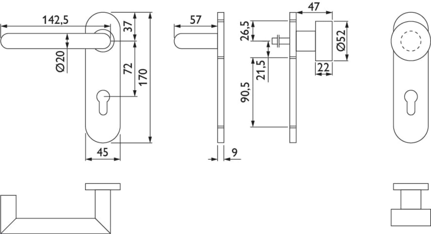 Feuerschutz-Wechselgarnitur 1808 BASIC 08, mit Gleitlager-Kurzschild 2006 KUI FS / Knopf 3127, Ausf.: PZW, fest/drehbar, 9 mm Vierkant, Türstärke 42 - 70 mm, Oberfl. 60 (Edelstahl matt)