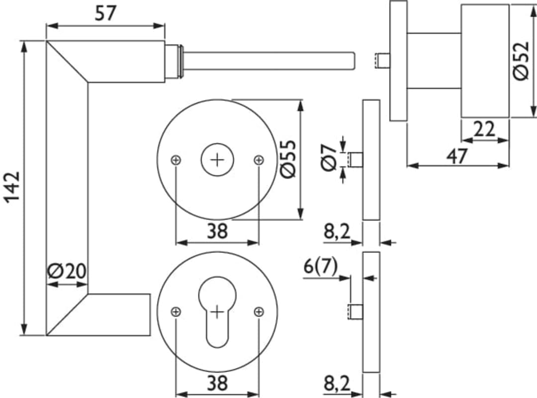Feuerschutz-Wechselgarnitur 1808 BASIC 08, mit Gleitlager-Rosetten 2073 FS / Knopf 3127, Ausf.: PZW, GK 4/7, fest/drehbar, 9 mm Vierkant, Türstärke 37 - 52 mm, Oberfl. 72 (Smoke Black)