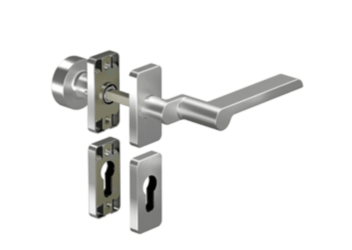 OGRO Wechselgarnitur 8928A/6611SR FS; Produkttyp: Wechselgarnitur; Produkttyp (Hersteller): Wechselgarnitur; Ausführung: Rosette; Befestigungsart Drückerrosette (außen): verdeckt verschraubt; Befestigungsart Drückerrosette (innen): verdeckt verschraubt; Befestigungsart Schlüsselrosette (außen): verdeckt verschraubt; Befestigungsart Schlüsselrosette (innen): verdeckt verschraubt; Befestigungstechnik: ohne Stütznocken; Montageart: aufliegend; Form Drückerrosette: eckig; Form Schlüsselrosette (außen): eckig; Form Schlüsselrosette (innen): eckig; Vierkant: 9 mm; Material: Edelstahl; Form Türgriff (innen): versetzt,Design; Form Türgriff (außen): rund; Ausführung Türgriff (außen): fest; Breite Türgriff (innen): 21 mm; Länge Türgriff (innen): 135 mm; Höhe Türgriff (innen): 67 mm; Höhe Türgriff (außen): 41 mm; Breite Drückerrosette (außen): 31,5 mm; Breite Drückerrosette (innen): 31,5 mm; Länge Drückerrosette (außen): 68,5 mm; Länge Drückerrosette (innen): 68,5 mm; Höhe Drückerrosette (außen): 9 mm; Höhe Drückerrosette (innen): 9 mm; Breite Schlüsselrosette (außen): 31,5 mm; Breite Schlüsselrosette (innen): 31,5 mm; Länge Schlüsselrosette (außen): 68,5 mm; Länge Schlüsselrosette (innen): 68,5 mm; Höhe Schlüsselrosette (außen): 9 mm; Höhe Schlüsselrosette (innen): 9 mm; Lagerung: festdrehbar,wartungsfreies Gleitlager,mit Rückholfeder; Einsatzbereich: Objekttür; Türart: Rohrrahmen; Türwerkstoff: Aluminium,Kunststoff; Anwendung: außen/innen; Lochung: Profilzylinder gelocht; DIN-Richtung: DIN Links; Farbe: grau; Farbton: edelstahl; Oberfläche: satino; Technik: Click&Go Technik; Ausführung Vierkant: Rollenwechselstift; Design Türdrücker: by Wagenfeld; Türstärke min.: 35 mm; Türstärke max.: 48 mm; Norm: DIN 18273,DIN EN 1906; Zulassung: für Feuerschutz,für Rauchschutz