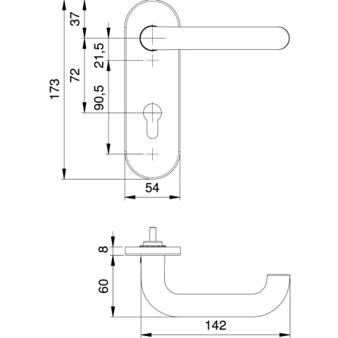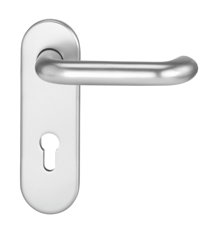 Grundkonstruktion: Stahl Eloxalfarbe: F1 silberfarbig Drücker-Lagerung: fest-drehbar Stütznocken: Stahl Ø 8 mm Verschraubung: M5, verdeckt Fluchttür-Garnitur: geprüft nach DIN EN 179 in Kombination mi
