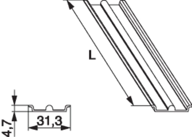 Laufschiene HS-ST barrierefrei in Alu Versatz 0 Nut 30x5 H=0mm L=3.500mm silber