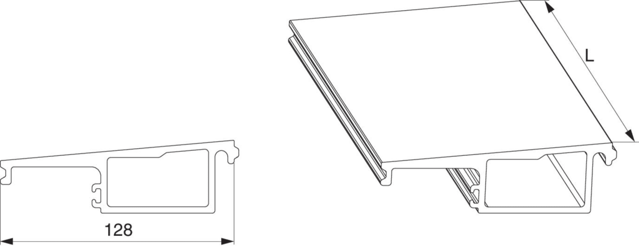 Verbreiterung HS-ST in GFK B=128mm L=6.500mm silber