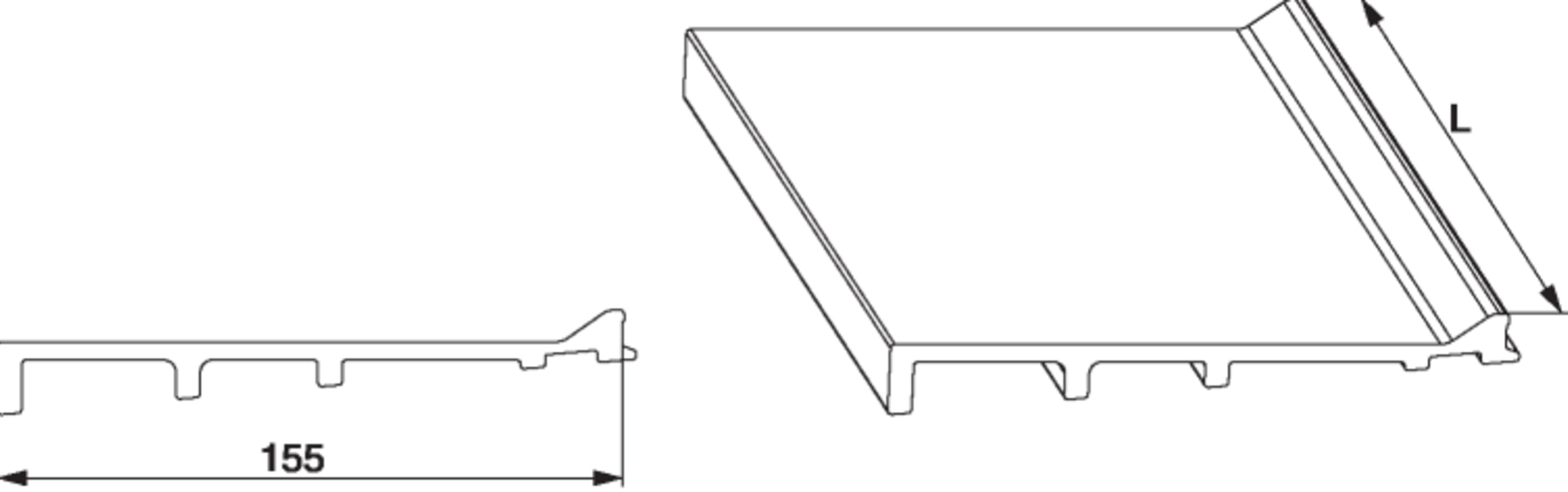 Zwischenprofil in GFK mit Einhängenut B=155mm glatt L=6.500mm silber