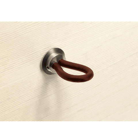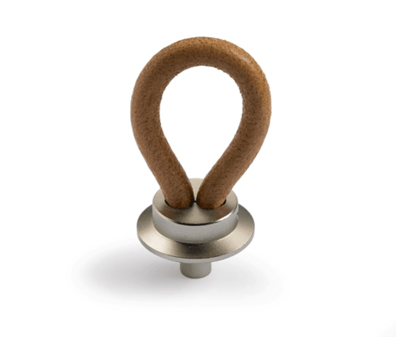 Knopf Filaga, L 20 mm, H 32 mm, Leder hellbraun / Vernickelt matt