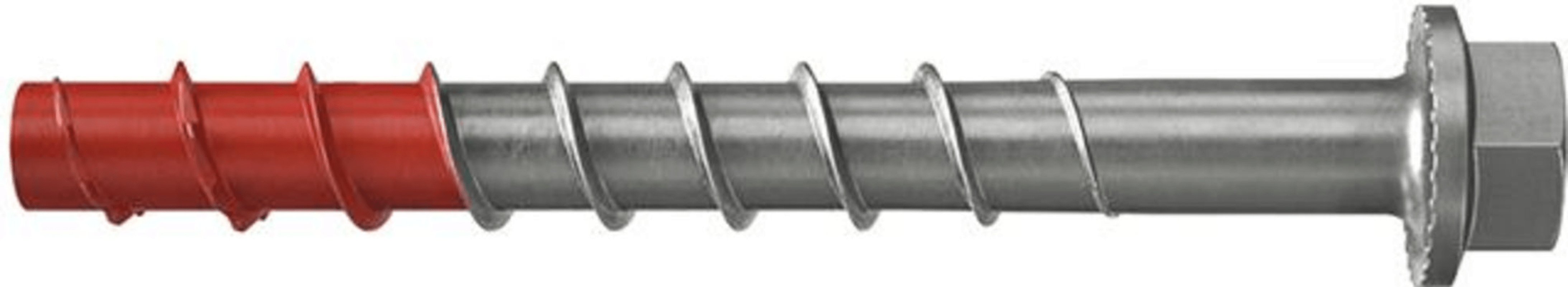 Die fischer Betonschraube UltraCut FBS II US R mit der speziell gehärteten roten Spitze, ist eine leistungsstarke Verankerungslösung für eine schnelle Montage. Die Betonschraube mit der angepressten Unterlegscheibe ist ideal für Anwendungen im Außenbereich oder in Feuchträumen. Die Europäische Technische Bewertung für gerissenen und ungerissenen Beton sowie für seismische Belastungen und die Brandeignung für die Feuerwiderstandsklasse R 120 garantieren ein zusätzliches Plus an Sicherheit. Die Sägezahngeometrie ermöglicht eine schnelle und kräftesparende Montage. Bei der Montage in Decken und Böden ist keine Bohrlochreinigung erforderlich. Die spreizdruckfreie Verankerung ermöglicht geringste Rand- und Achsabstände.