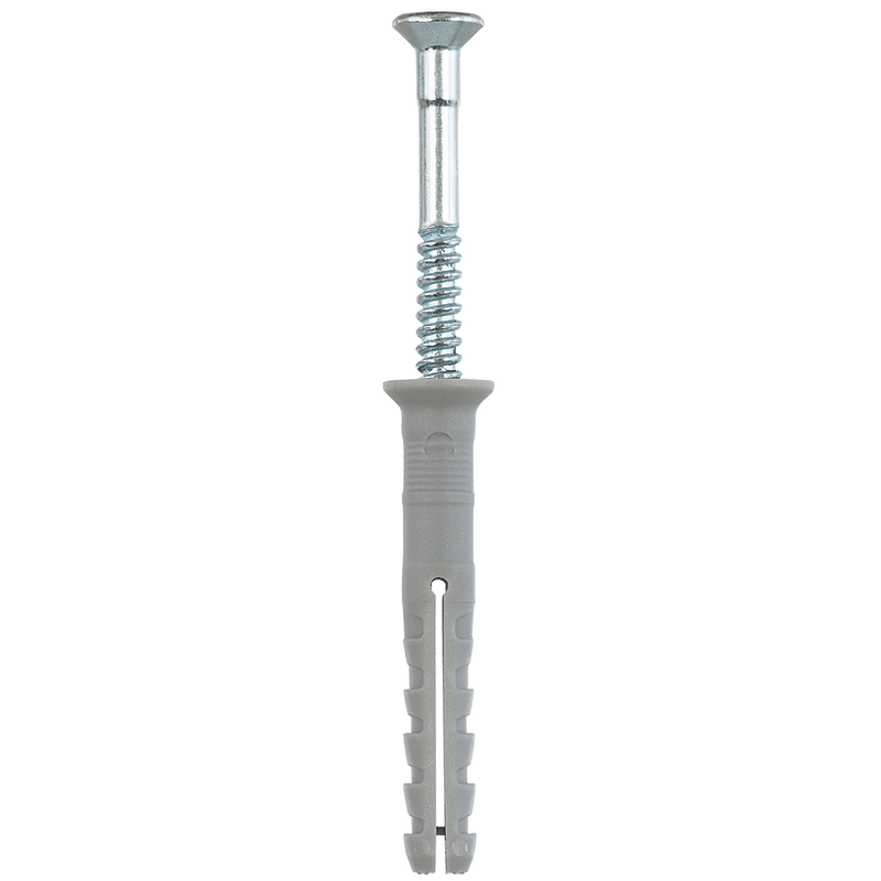 Der fischer Nageldübel N-S mit Senkkopf besteht aus einem hochwertigen Nylondübel und einer galvanisch verzinkten Nagelschraube. Diese sind für eine schnelle Montage bereits vormontiert. Der Nageldübe