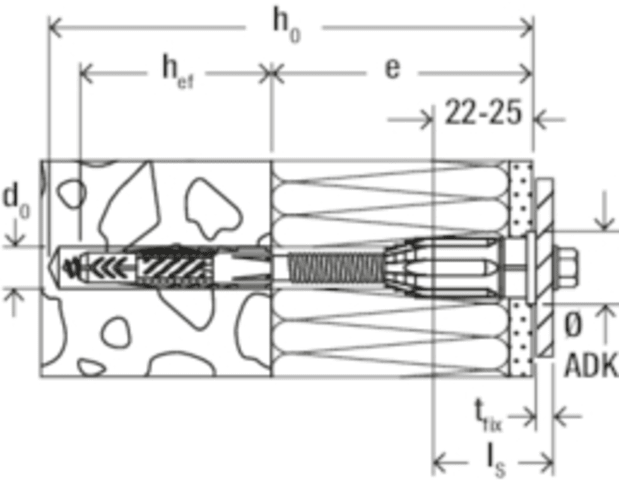 Das fischer Abstandsmontagesystem TherMax 10 ist eine Lösung zur Befestigung in der Außenwand ohne Wärmebrücken im WDVS. Die Stockschraube mit dem glasfaserverstärkten Konus fräst sich selbstschneidend durch den Putz in den Dämmstoff. Die Stockschraube wird bei der Montage in den Universaldübel UX gedreht und verankert somit sicher im Baustoff. Der Anti-Kälte-Konus am Kopf der Stockschraube unterbricht die Wärmebrücke und nimmt die äußere Befestigung auf. Der TherMax befestigt leichte Lasten wie Leuchten, Briefkästen oder Blitzableiter in Beton, Porenbeton und Mauerwerk aus Loch- und Vollstein.