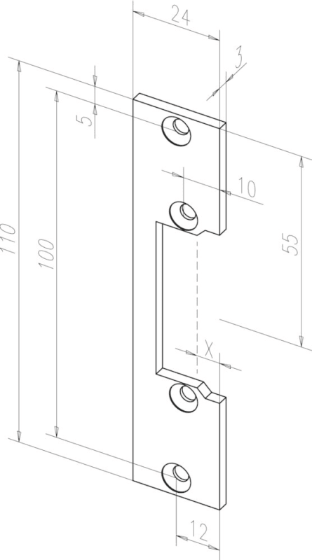 effeff Flachschließblech 106; Produkttyp: Flachschließblech; Produkttyp (Hersteller): Flachschließblech; Ausführung: für Türöffner,kurz; Ausfräsung: mit Fallenausschnitt; Material: Stahl; Einsatzberei