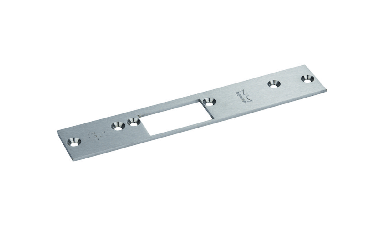 DORMA, Türrahmen-Flachschließblech, Ausführung: für Türöffner, ohne Fixrillen, Modellnummer: FK 507, Material: Edelstahl, DIN-Richtung: DIN Links, Farbton: edelstahl, Oberfläche: matt, Ergänzung: mit