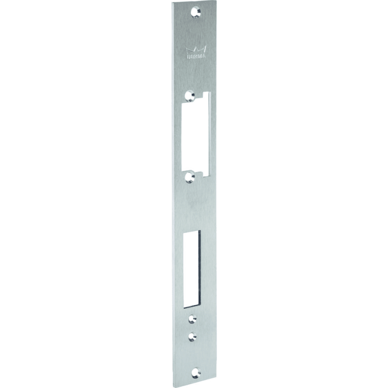 DORMA, Türrahmen-Flachschließblech, Ausführung: für Türöffner, ohne Fixrillen, Modellnummer: FL34-RK, Material: Edelstahl, DIN-Richtung: DIN Links-Rechts, Farbton: edelstahl, Oberfläche: matt, Ergänzung: mit Fallen und Riegelausschnitt, Türausprägung: Türe stumpf, Türflügelanzahl: einflügelig, Befestigungsart: zum Aufschrauben, Schließblechbreite: 34 mm, Schließblechlänge: 250 mm, Schließblechstärke: 3 mm, Schließblechausführung: kantig, Vorgerichtet: für Riegelschaltkontakt, Türart: Objekttür, Rahmenwerkstoff: Holz