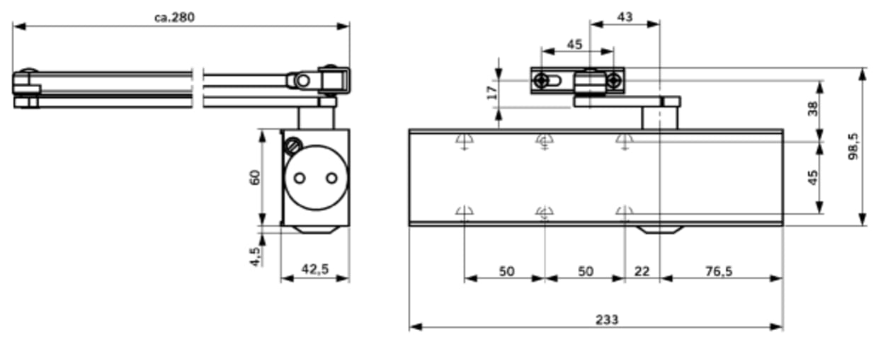 Dorma Flachgestänge für die Türschließermodelle TS 72, TS 73 und TS 83.