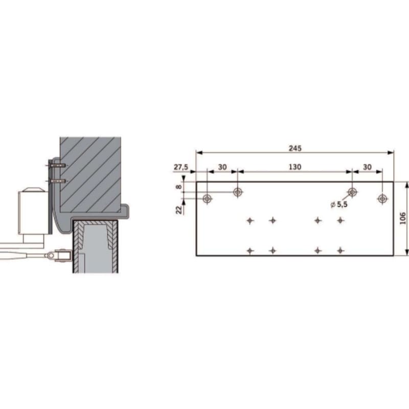 Als Zwischenplatte, wenn der Schließer nicht direkt montiert werden kann. An Feuer- und Rauchschutztüren ist ein Eignungsnachweis in Verbindung mit der jeweiligen Tür erforderlich.