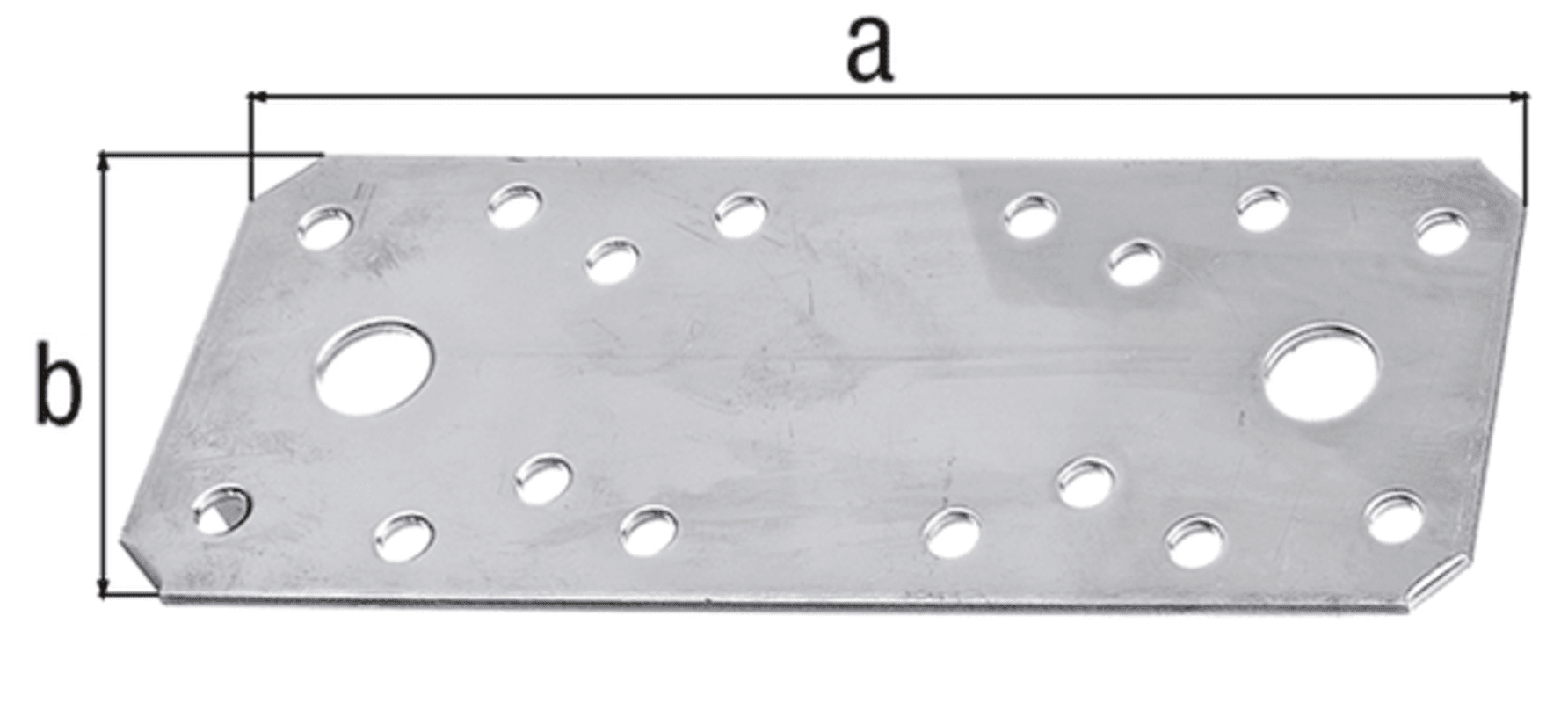 GAH Alberts; Ausführung: gerade; Werkstoff: Stahl; Oberfläche: sendzimirverzinkt; Befestigung: Rillennägel,Schrauben; Typbezeichnung: Flachverbinder; Anwendungsbereich: Holz,Holzwerkstoffe; CE-Kennzei