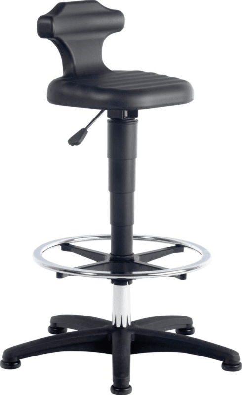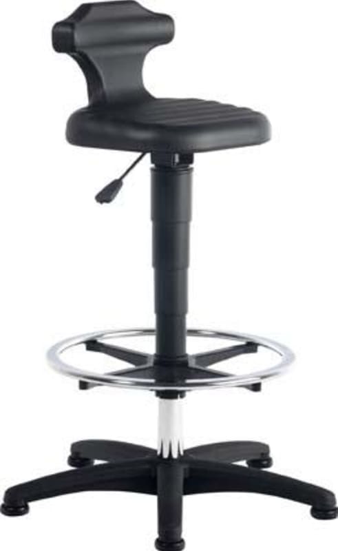 Sitz-Stehhilfe Modell Flex 3 • Sitz und Rückenstütze: Integralschaum, schwarz, robust, abwaschbar • Sitzfläche: Wave-Oberfläche, rutschhemmend, strukturiert, um 360° drehbar • Rückenstütze: körperger