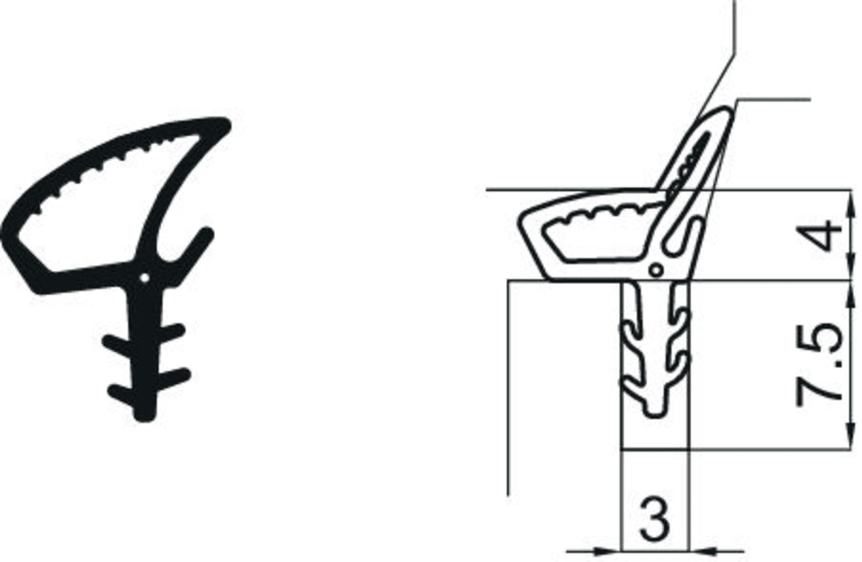 Beutel Flügeldichtung HS Getriebeseite und unten SC6001a 2,5m x2,5m Silikon Signalschwarz
