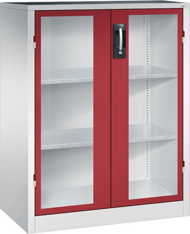 Schwerlast-Beistellschrank, mit Flügeltüren • Material: Stahlblech mit hochwertiger Einbrennbeschichtung • Sichtfenster: 3-mm-Acrylglas, fest verklebt, verdeckte Schließstangen • Türen: Scharniere au