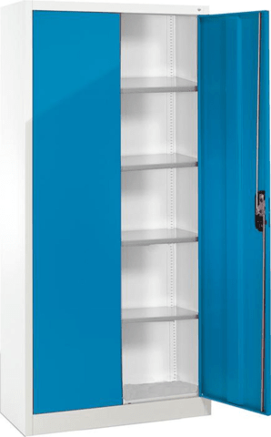 CP Flügeltürenschrank B1200xT400xH1950 mm RAL 7035/5012,4Fachböden Tragkraft 70kg