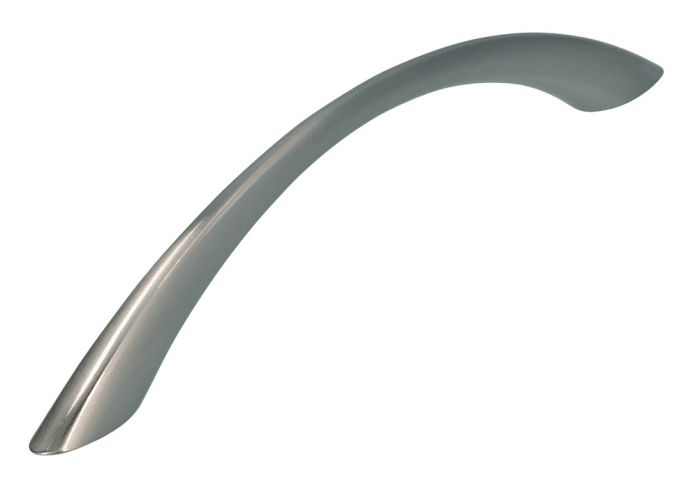 FORMAT, Möbel-Griff, Modell: Belinda, Breite: 11 mm, Bohrabstand: 128 mm, Länge: 161 mm, Höhe: 28 mm, Material: Zamak, Farbton: edelstahloptik, Befestigung: M4 Gewinde, Befestigungsart: zur Verschraubung von der Rückseite, Anzahl Befestigungspunkte: 2 St., Form: gebogen, Montage: unsichtbar verschraubt