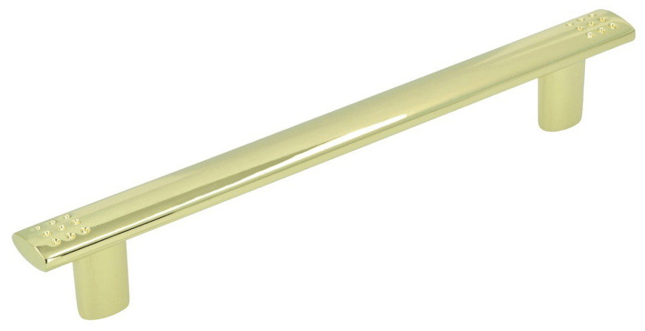 FORMAT, Möbel-Griff, Modell: Naiad, Breite: 15 mm, Bohrabstand: 128 mm, Länge: 162 mm, Höhe: 24 mm, Material: Zamak, Oberfläche: vermessingt, Sockeldurchmesser: 8 mm, Ausführung: mit Sockel, Befestigu