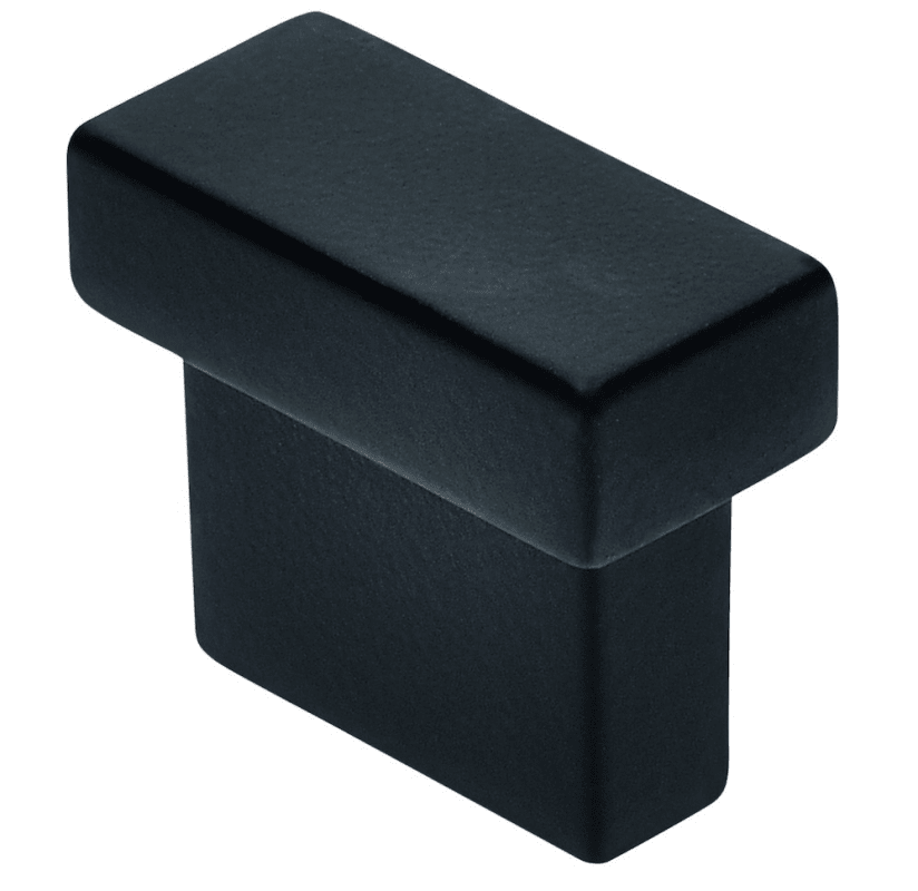 FORMAT, Möbel-Knopf, Bohrabstand: 16 mm, Modell: Tesis, Material: Zamak, Farbe: schwarz, Oberfläche: matt, Befestigung: M4 Gewinde, Befestigungsart: zur Verschraubung von der Rückseite, Breite: 14 mm, Länge: 29 mm, Höhe: 24 mm, Form: eckig, Lieferung: mit Schrauben