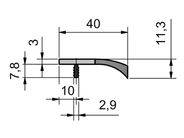 FORMAT, Möbel-Griffleiste, Modell: K, Ausführung: mit gefrästen Stegenden, Länge: 445 mm, Material: Aluminium, Farbton: edelstahloptik, Oberfläche: eloxiert, Form: 2, Griff abgesetzt: 80 mm, Nutbreite: 2,5 mm, Fräsnuttiefe: 7,8 mm,: 19 mm, Montage: Harpunensteg wird in die Nut gepresst,: Auf Anfrage auch auf Maß lieferbar