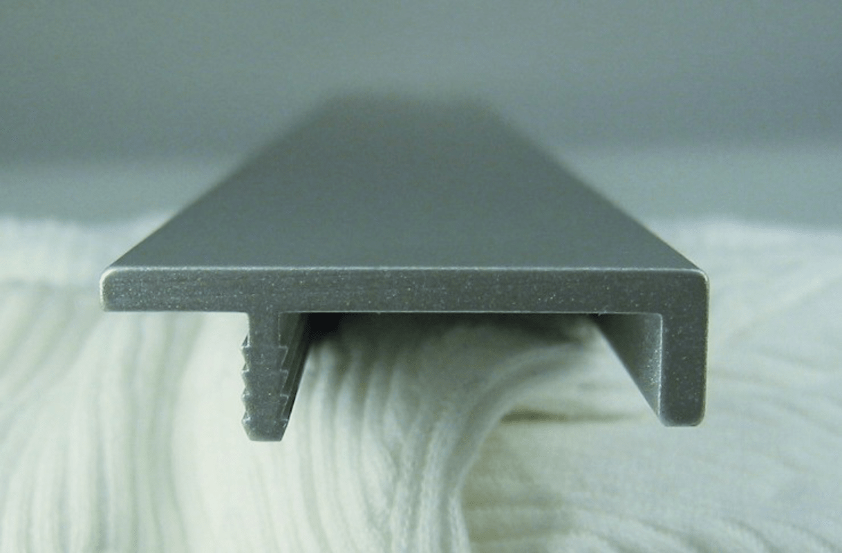 FORMAT, Möbel-Griffleiste, Modell: J, Ausführung: ohne Ausklinkung, Länge: 2.500 mm, Höhe: 10 mm, Tiefe: 37 mm, Stärke: 3, Material: Aluminium, Farbton: edelstahloptik, Oberfläche: eloxiert, Nutbreite: 2,5 mm, Fräsnuttiefe: 7 mm,: 19 mm, Montage: Harpunensteg wird in die Nut gepresst