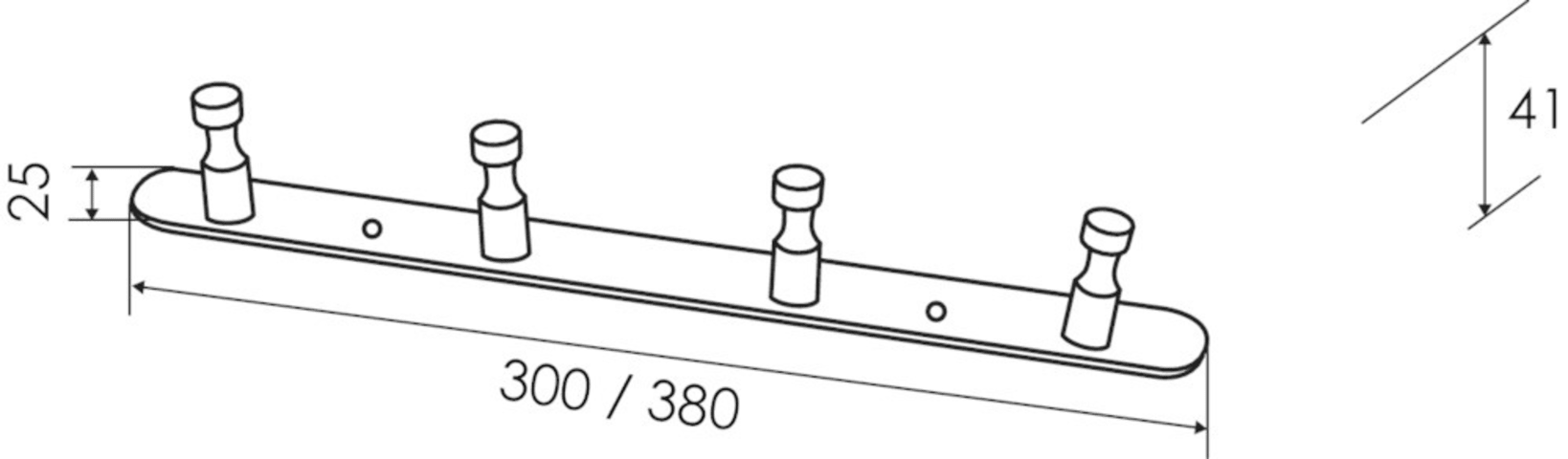 FORMAT, Garderoben-Hakenleiste, Länge: 300 mm, Tiefe: 41 mm, Höhe: 25 mm, Breite Anschraubplatte: 25 mm, Modell: Liaq, Material: Edelstahl, Oberfläche: gebürstet, Anzahl Haken: 4 St.