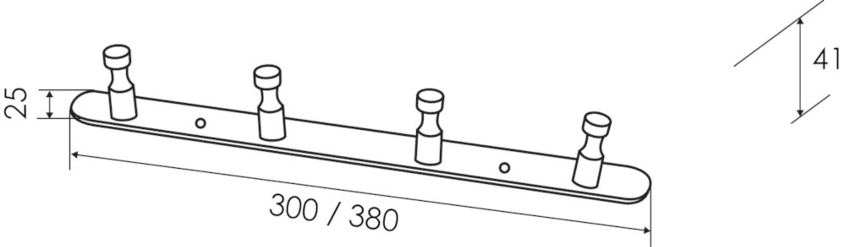 FORMAT, Garderoben-Hakenleiste, Länge: 380 mm, Tiefe: 41 mm, Höhe: 25 mm, Breite Anschraubplatte: 25 mm, Modell: Liaq, Material: Edelstahl, Oberfläche: gebürstet, Anzahl Haken: 5 St.