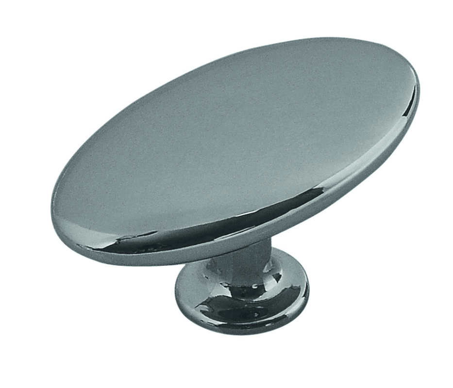 FORMAT, Möbel-Knopf, Modell: Atlas, Material: Zamak, Oberfläche: glanz verchromt, Befestigung: M4 Gewinde, Befestigungsart: zur Verschraubung von der Rückseite, Breite: 36 mm, Länge: 64 mm, Höhe: 35 mm, Durchmesser (Sockel): 20 mm, Form: oval, Lieferung: mit Schrauben