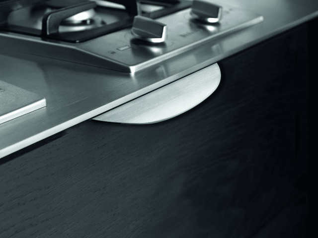 FORMAT, Möbel-Griffleiste, Modell: Edge Bow, Länge: 350 mm, Breite: 41 mm, Höhe: 18 mm, Stärke: 1,4, Material: Aluminium, Farbton: edelstahloptik, Oberfläche: eloxiert, Bohrabstand: 2 x 160, Montage: rückseitig, zum Anschrauben