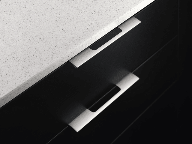 FORMAT, Möbel-Griffleiste, Modell: Edge Urban, Länge: 350 mm, Breite: 41 mm, Höhe: 18 mm, Stärke: 1,4, Material: Aluminium, Farbton: edelstahloptik, Oberfläche: eloxiert, Bohrabstand: 2 x 64, Montage: rückseitig, zum Anschrauben